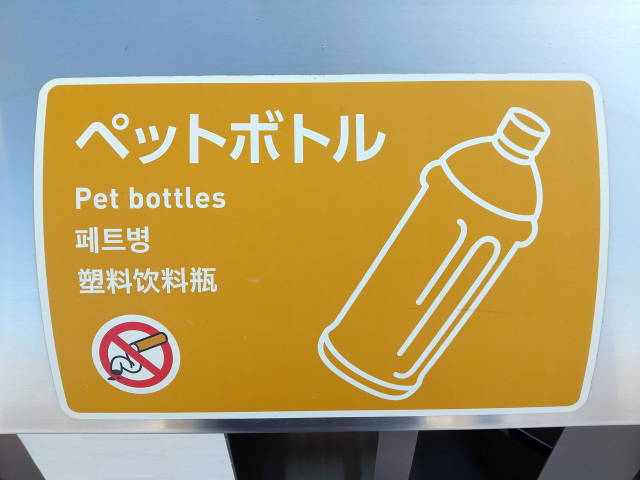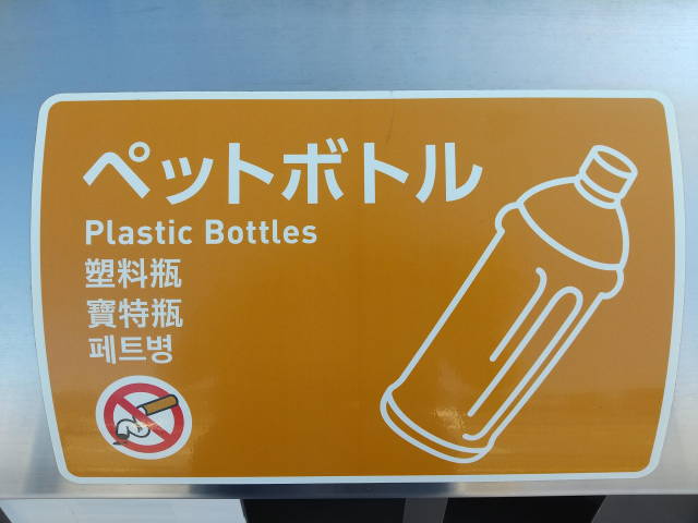 と思ったら隣のゴミ箱には、ちゃんと「Plastic Bottles」って書かれてました。