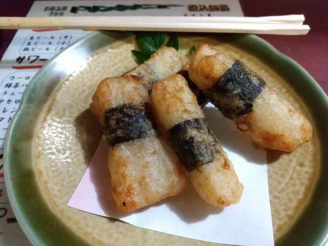 自家製もつ煮、山いも磯部揚げ、スペシャルうらら焼。
