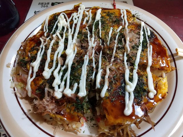 終盤は他に客がいなくなったので、お好み焼き店を開くことになった経緯や、昔周辺にあった店のその後等々、女将と昔話。