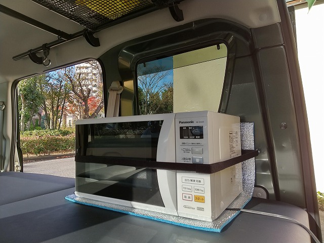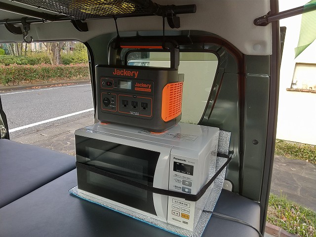 エブリイに、電子レンジとポータブル電源を積んでみました。