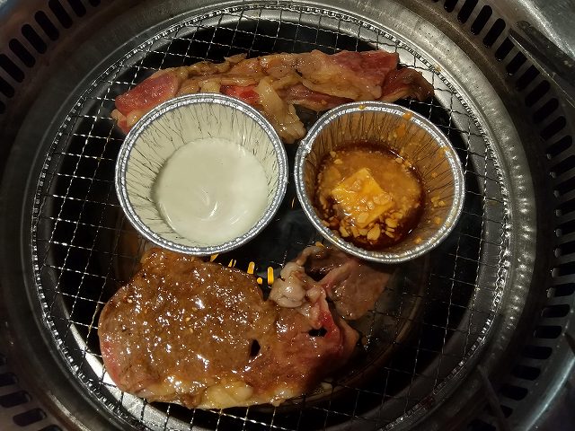 極みカルビ、ドでか!ロース、焼しゃぶカルビ〜おろしポン酢〜、厚切り牛タン、特上リブロースステーキ等、プレミアムコースでしか食べられないメニューを中心に発注。80分でラストオーダー、制限時間は100分なので余裕だと思っていたけど、オーダーしてもなかなか来ないこともあり、ゆっくり写真を撮る間もなく食べ続けて終了。