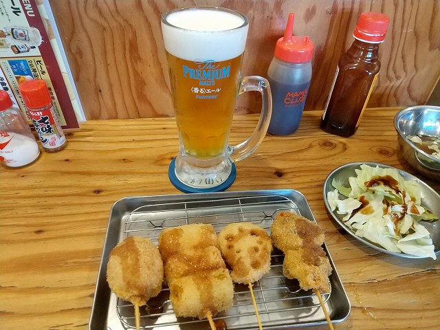 3週連続で「串カツ田中」まで往復ウォーキング、生中×3+串カツ×6+お通しのキャベツ×3で、計1830円也。3日後に「酒飲みPass」の期限が切れるので、串カツ田中での昼のみは一旦ここで終了。