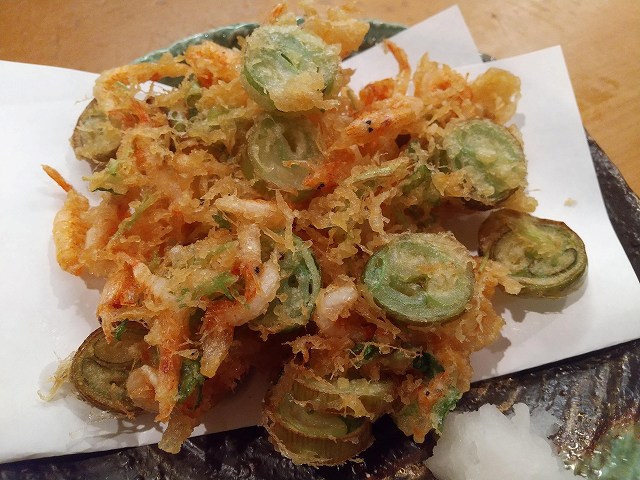 本日入荷の鮮魚を中心に、イカ、縞鯵、鰹、白海老のバラ揚げ、桜海老のかき揚げ、握り寿司5貫を発注。