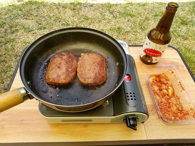 タープの正面は抜けてるけど、三方は囲われているので、野郎ひとりなら問題なし。