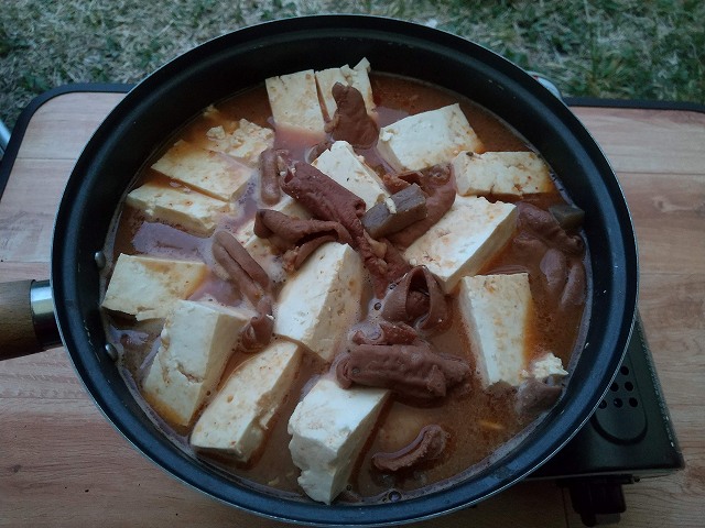 もう1〜2品作ろうと思っていたけど、賞味期限が迫ったモツ煮があったので、こちらを食べることに。