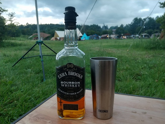 カミさんが懸賞で当てたクラフトビールを飲んで、数年前に「安いバーボンを飲んでみよう」シリーズで一番旨かった「EZRA BROOKS 90 PROOF」、通称「エズラ・ブラック」をソーダで。