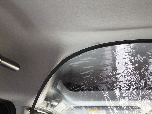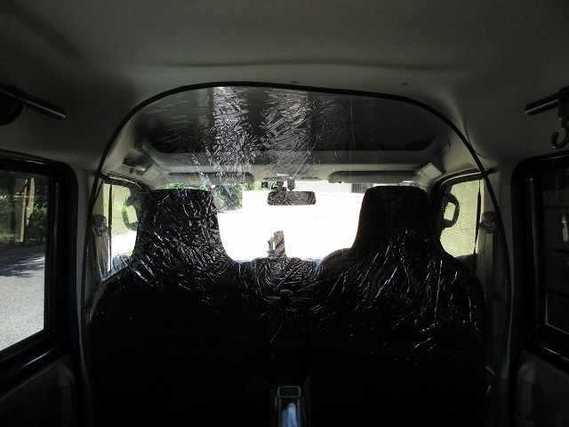 透明シートの車内パーティションを、楽天で2980円で購入、ちなみに純正品は11000円。
