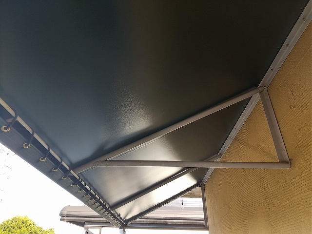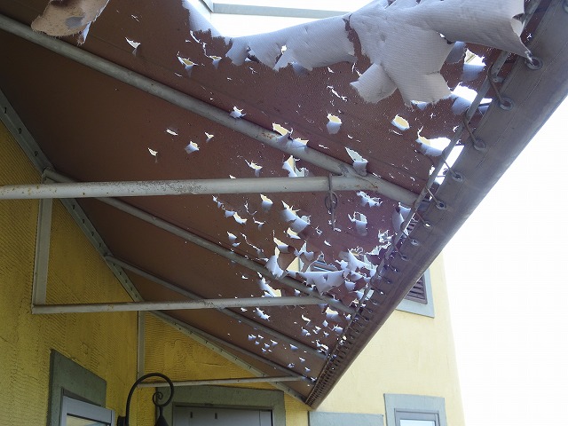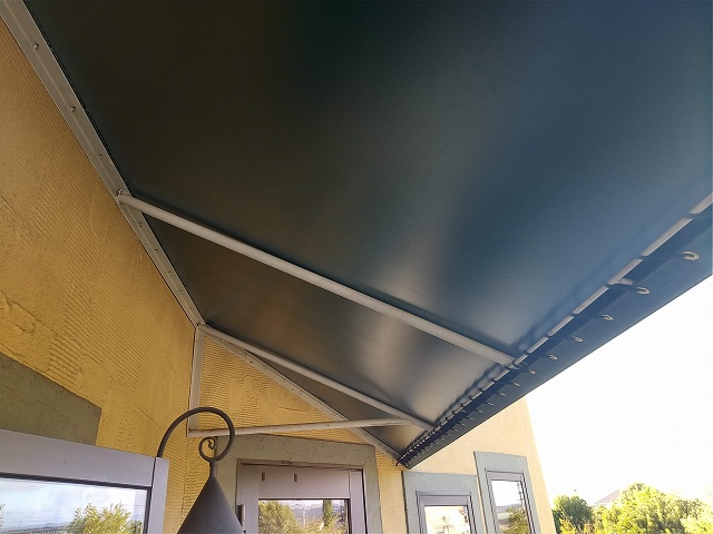 もう一つ、去年の雹害で損壊した、廃棄するつもりだったベランダのオーニング(テント)を、カミさんの希望で張りなおすことに。