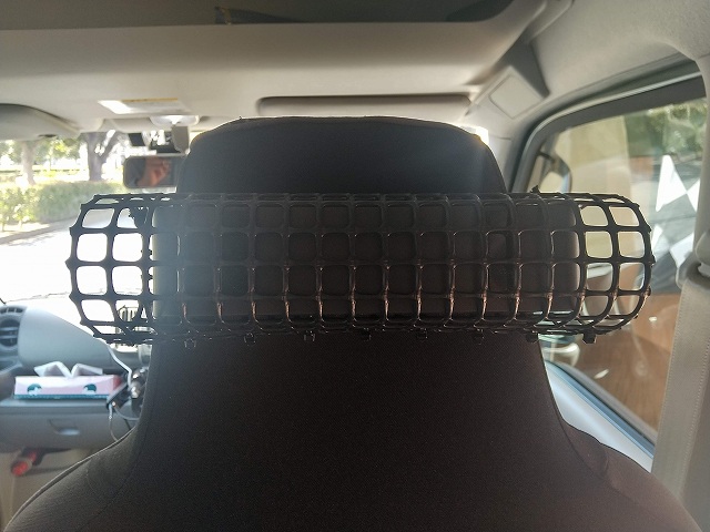 ブルートゥーススピーカーをヘッドレストの後方に取り付ける方法を思案、用意したのは計り売りのトリカルネット@350円と、結束バンド@200円。