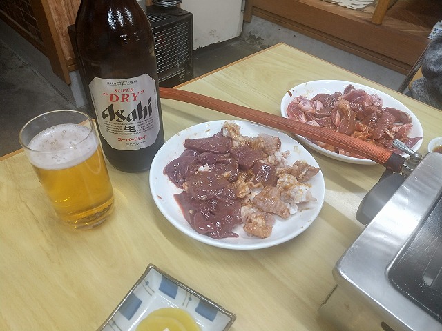 生中×4杯+豚肉16皿+鶏肉5皿+野菜&豆腐で腹いっぱい、前回と同じく夕食は抜き。