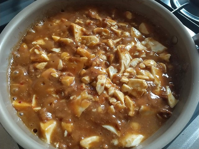 豆腐と合わせて麻婆豆腐もどき、悪くなかったけど、麻婆豆腐の素の方が美味。