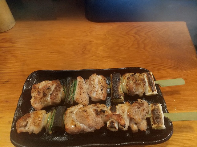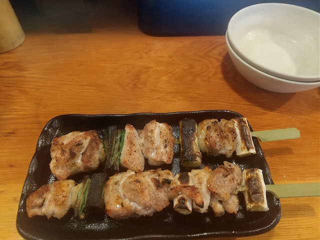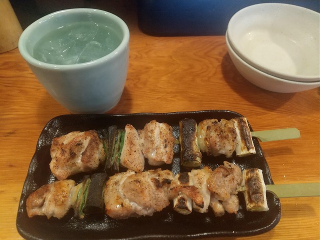焼き鳥×5皿+生ビール+冷酒+麦焼酎ロックで計2960円也。