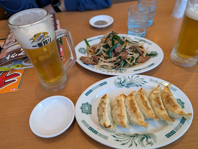 日高屋の餃子とニラレバ炒めは〇。