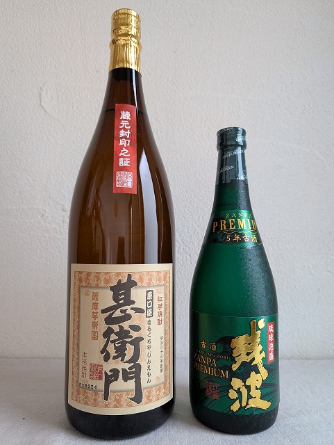 今年の正月用の酒は、友人から貰った「残波プレミアム」と、エルディンガーと交換した「原口屋甚右衛門・紅芋仕込み」。