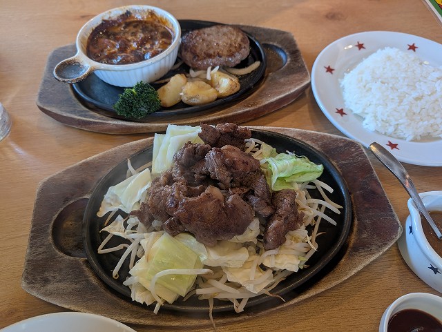 久しぶりにカミさんと「ステーキどん」でランチ、σ(^^)は牛肉盛り、カミさんはハンバーグ&ビーフシチュー。