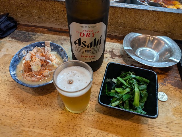 お約束の「たきおか」に寄って、瓶ビール+ニラ+煮込みで計890円也。