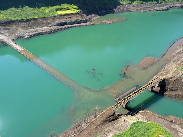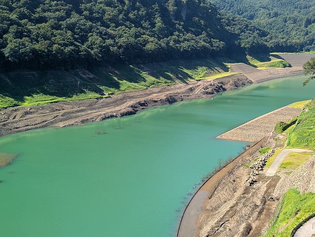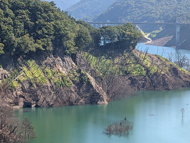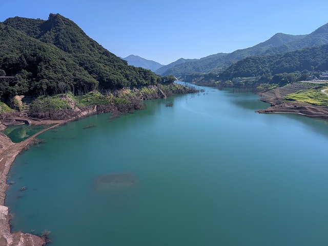 貯水率は約22%、昔の道路や橋が見える状態、秋の長雨で水不足が解消されるといいけど。