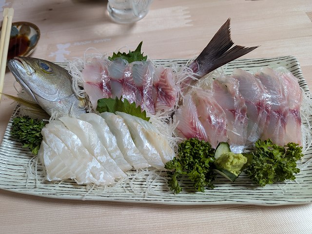 帰りに以前から気になっていた「下田鮮魚」に寄って、刺身の盛り合わせ@1620円と焼ダコ@756円を購入。