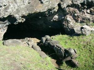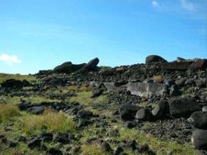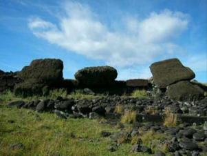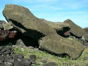 ここには倒されたモアイが、当時のままの状態で残されている。