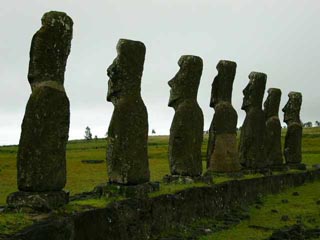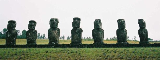 イースター島のモアイは、外敵から島民を守るためにすべて内陸を向いて立っているが、