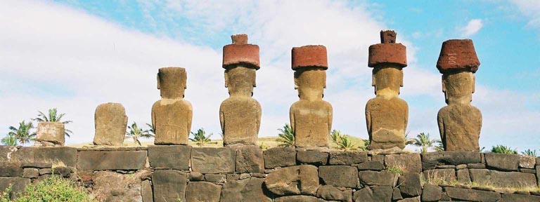 アナケナ・ビーチの小高い丘の上に立つ7体のモアイ。