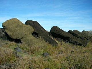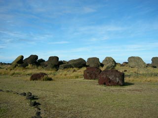 18世紀に起こったフリモアイ(モアイ倒し戦争)の激戦区。8体のモアイが、