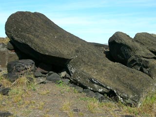 引き倒されたモアイとプカオ。