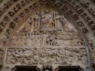 彫刻も見事です。これは中央門上部の「最後の審判」。下段には墓から