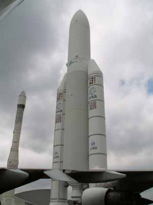 アリアン5ロケット。全長52m、直径5.4m、打上時質量710,000kg。