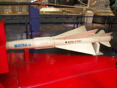 右)マトラ製の対空ミサイル。マトラ社は1970〜80年代にF1(←自動車レース)