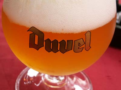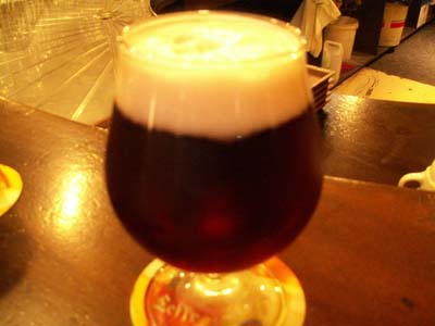 左の赤いのはベルギーで有名なチェリービール。ジュースのような