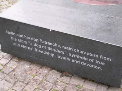 教会前広場にある、ネロとパトラッシュ記念ベンチ。ここを訪れる