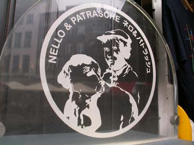 こちらも土産屋で売られている、フランダースの犬の絵葉書。
