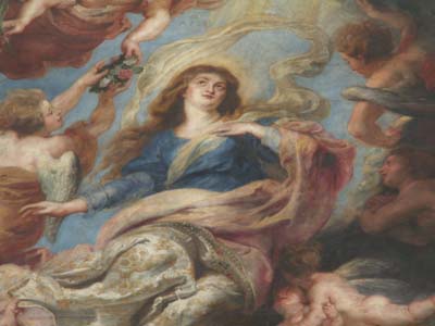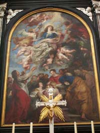 正面祭壇に飾られている、ルーベンス作「聖母被昇天」。