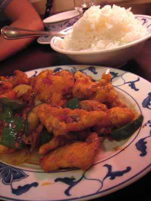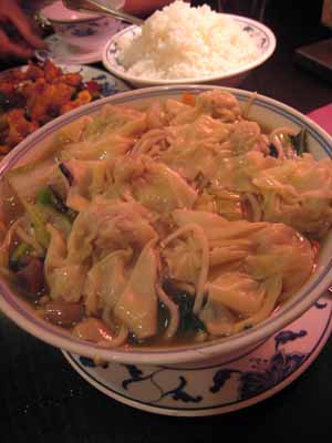 ワンタンメンとチリチキン(大盛りのライス付き)。どちらも美味でした。