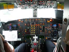 機材はB737。乗り込むとコクピットが見えたので、