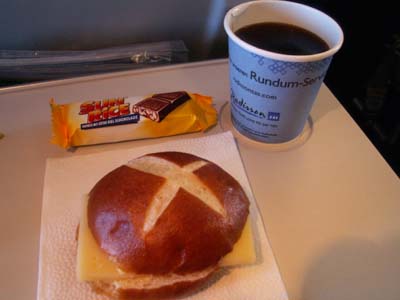 フランクフルトまでのフライト時間は1時間強ですが、パンとチーズ、