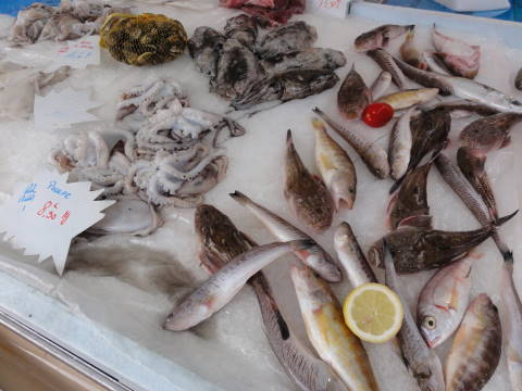 白い方が豚肉のフランクフルト@2.8EUR、茶色が牛肉のフランクフルト@2.5EUR。