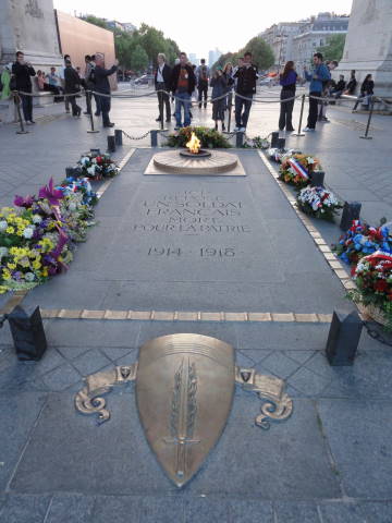 凱旋門の上は展望台、下は第一次大戦で戦死した無名戦士の墓。