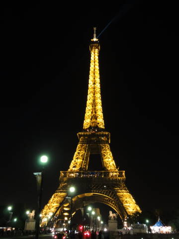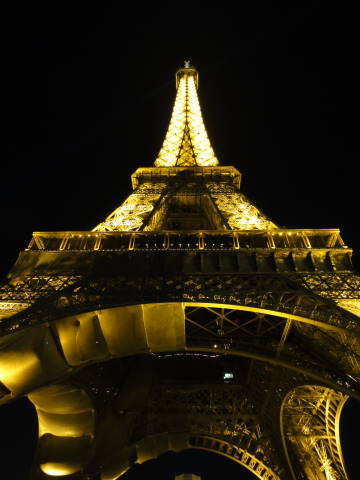 エレベーターで展望台へ上がってパリの夜景を見る計画でしたが、何とこの時間(夜10時半過ぎ)で45分待ち! これではホテルへ向かうのが0時を回ってしまうので、今回は諦めることに。