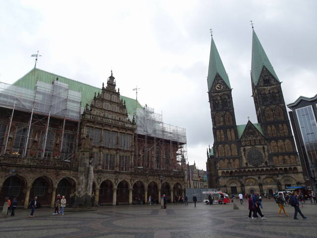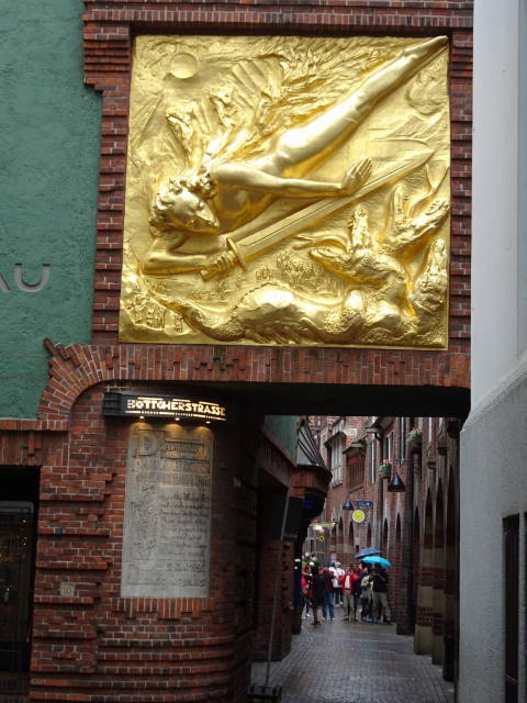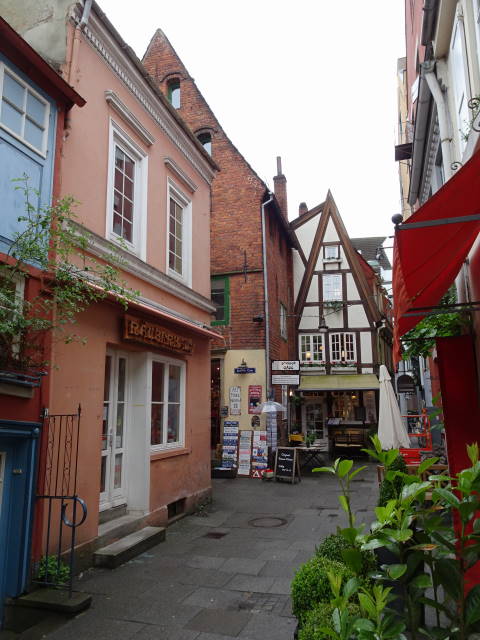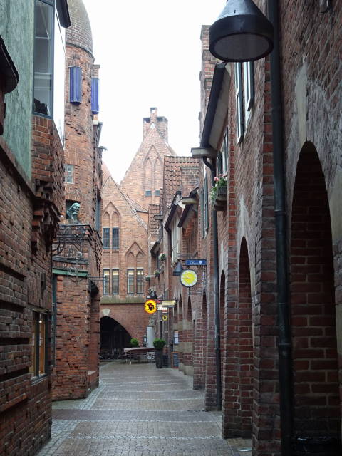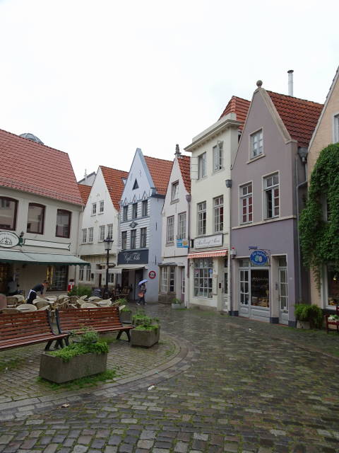 まるで童話の世界のような町並みです。マルクト広場とベトヒャー通りとここは、ブレーメンの観光ポイントのようで、3カ所すべてでマルクト広場で話し掛けられたデンマーク人の団体観光客と遭遇しました。