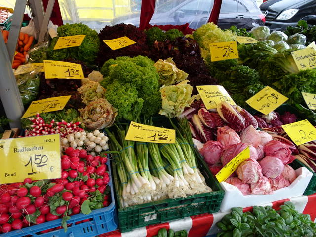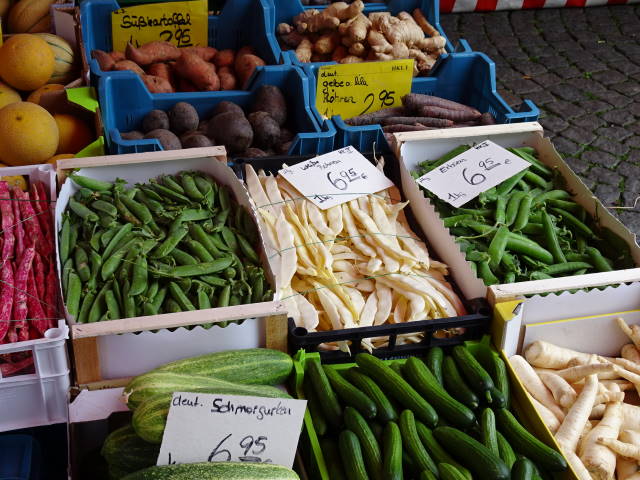駐車場へ戻る途中、広場に小さな朝市が立っていたので、ちょっとだけ見学。