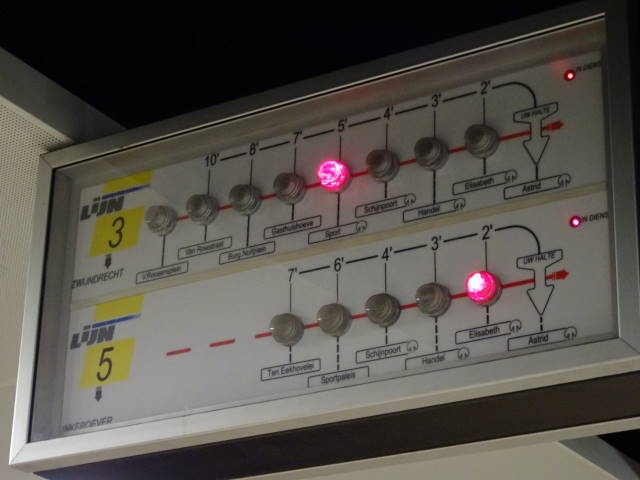 次に来るプレメトロが今どこにいて、あと何分で到着するかを知らせる案内盤が、とってもレトロ!