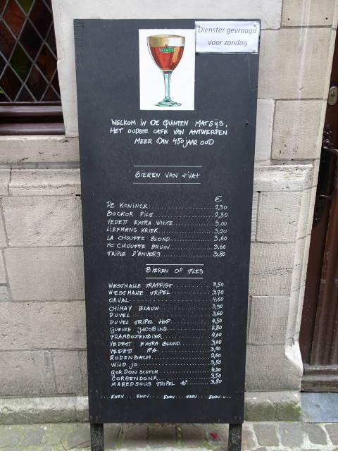 まずは昼食。聖母(ノートルダム)大聖堂(Onze Lieve Vrouw Kathedraal Antwerpen)近くの、カフェ・クイントンマセイス(Cafe Quinten Matsijs)へ。