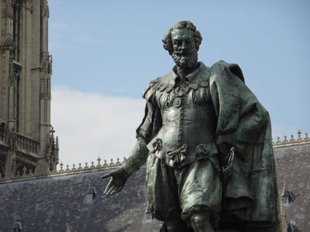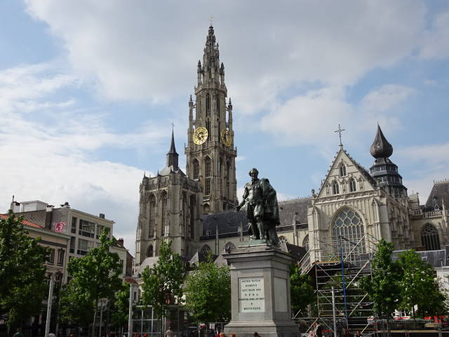 フルン広場(Groenplaats)のルーベンス(Peter Paul Rubens)像と大聖堂。