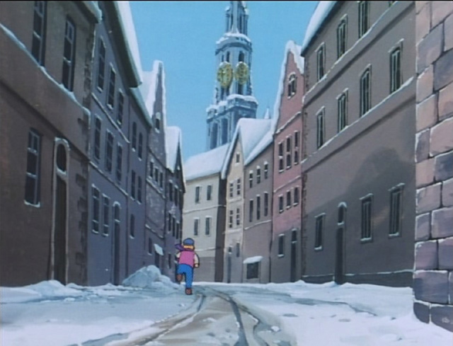 アニメの中で、ネロが雪道を走って大聖堂へ向かうシーンはここ?