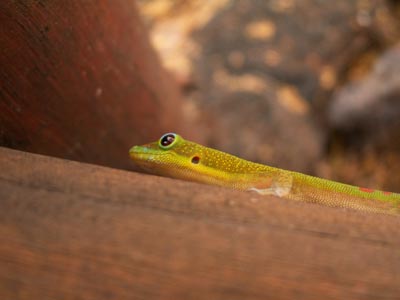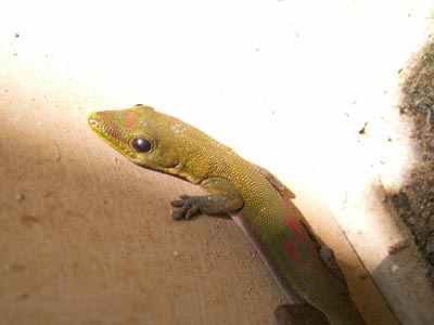 背中や鼻先に赤い模様(ちょっと南国的?)があるトカゲがチョロチョロっと