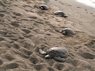 見に行くためだ。海岸沿いを歩いていると、ここにも4匹の海ガメが。