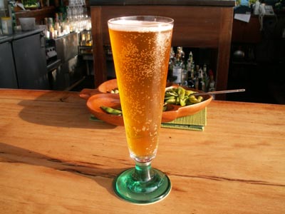 おつまみに出てきたのは、ワサビ味のフライド・ビーンと枝豆!
