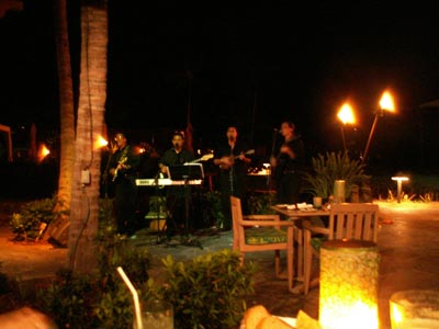 夕食はホテル内のレストラン「ビーチ・ツリー・グリル」。生バンドの演奏も